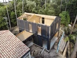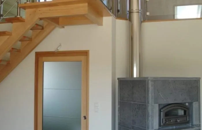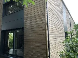 - Murs ossatures bois épicéa + isolation laine de bois + ITE fibre de bois